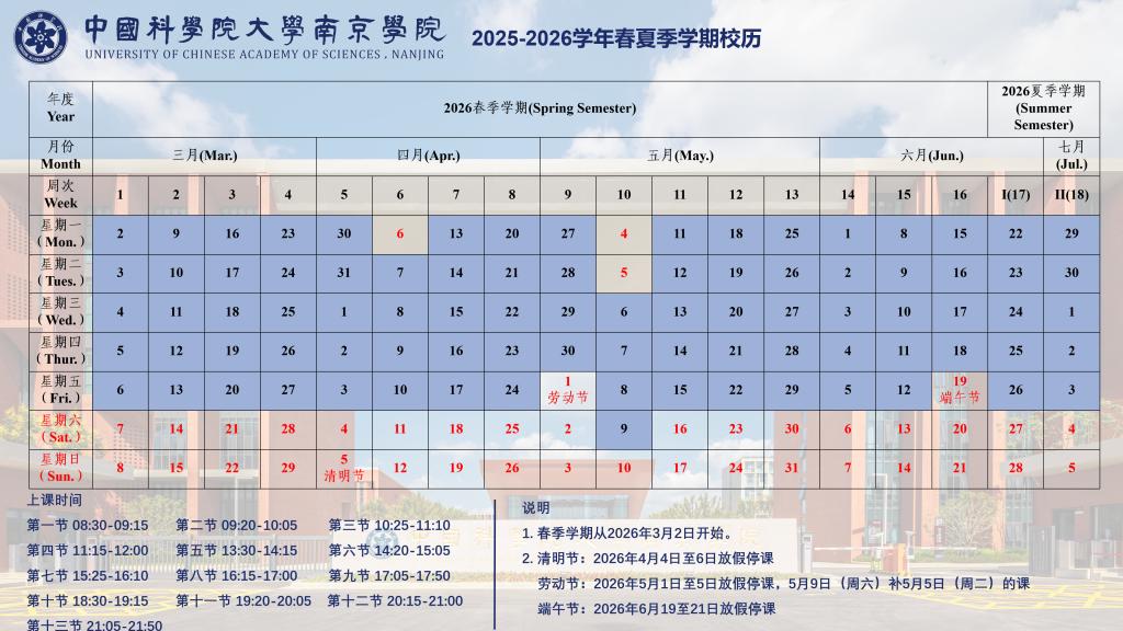2025-2026学年春季和夏季学期校历