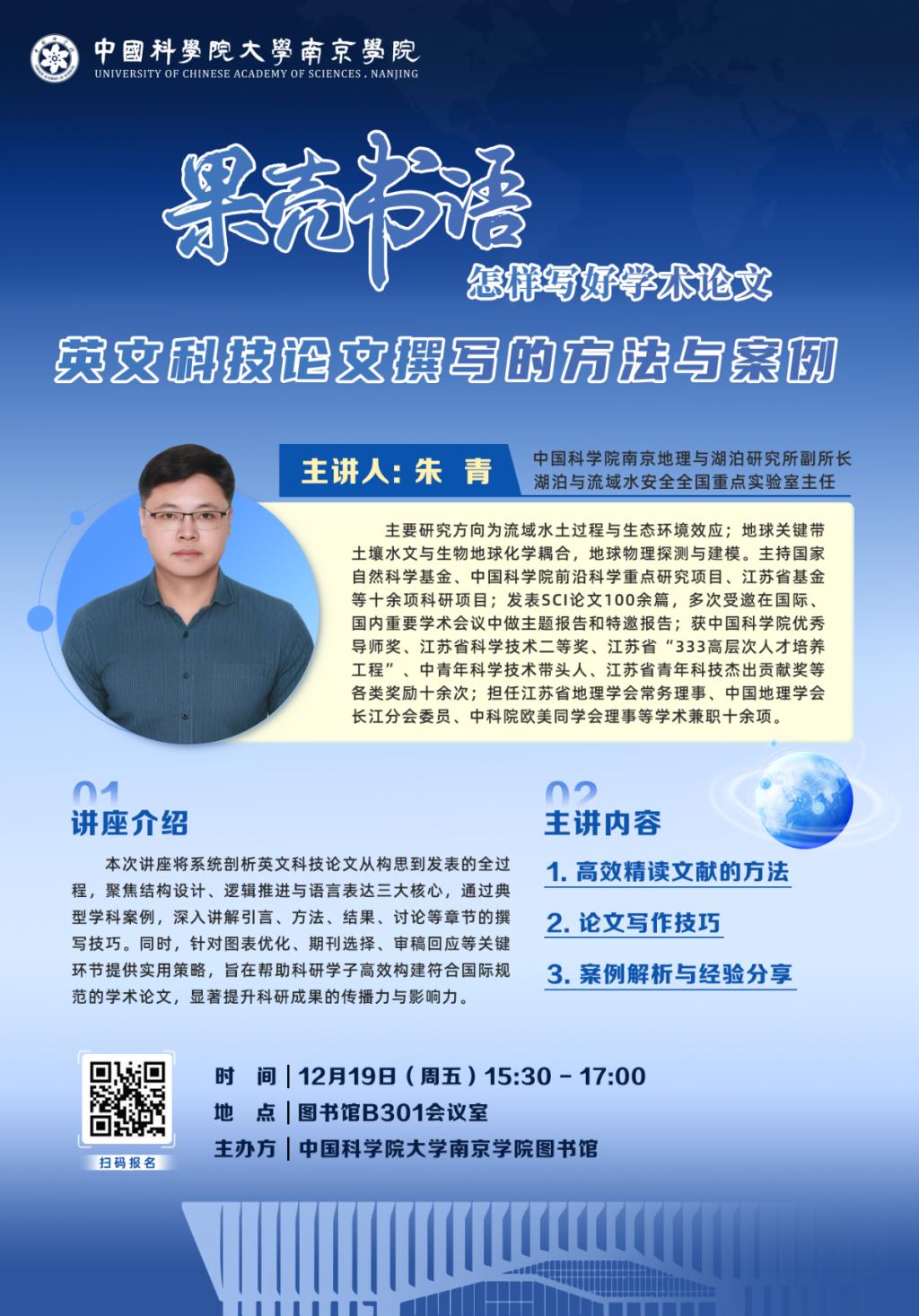 本次讲座将系统剖析英文科技论文从构思到发表的全过程,聚焦结构设计、逻辑推进与语言表达三大核心,通过典型学科案例,深入讲解引言、方法、结果、讨论等章节的撰写技巧。同时,针对图表优化、期刊选择、审稿回应等关键环节提供实用策略,旨在帮助科研学子高效构建符合国际规范的学术论文,显著提升科研成果的传播力与影响力。